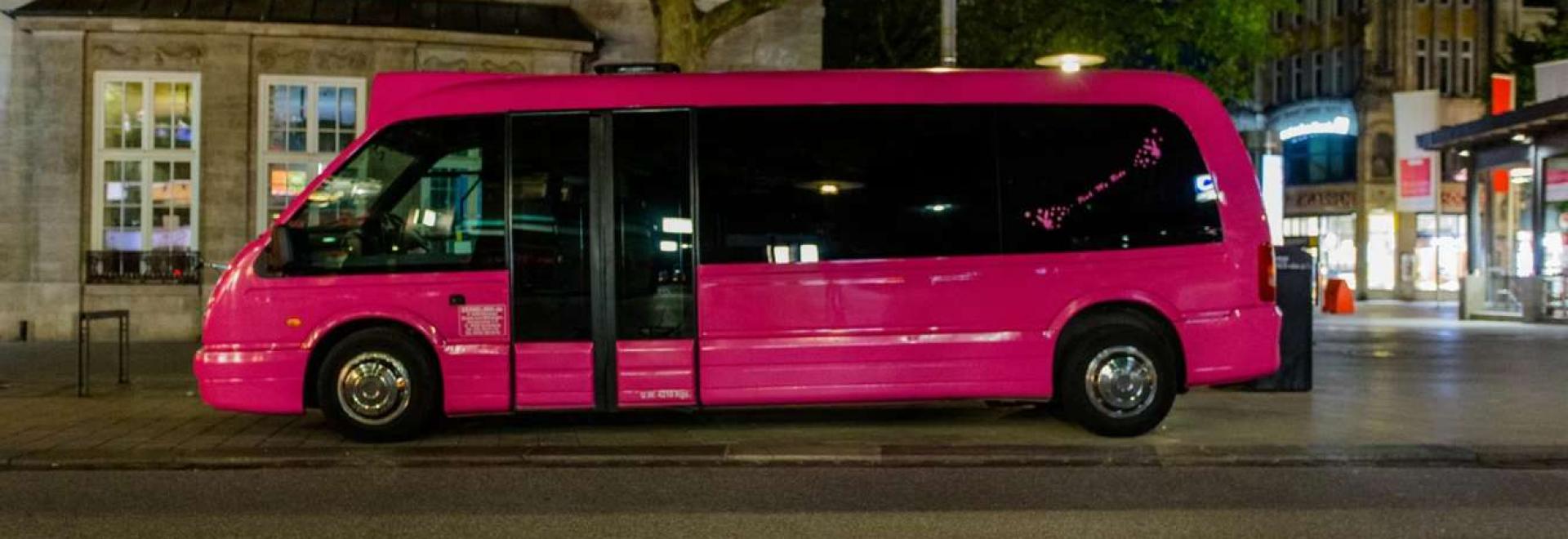 Our pinky party bus is popular with both stag & hen groups. For up to 16 people this vehicle offers very attractive way on how to reach your Hamburg accommodation.